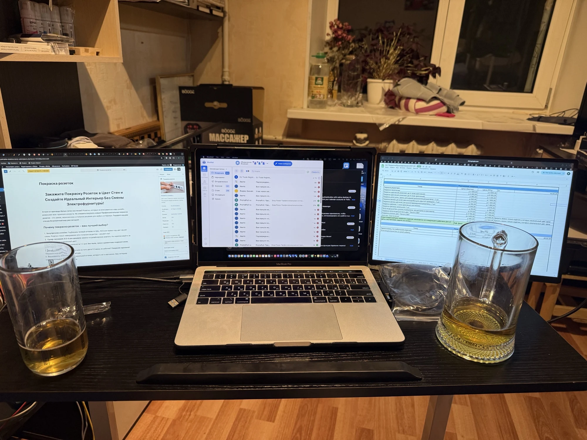 • A financial analyst tracks live markets on two extended screens while keeping Excel open on the main display.